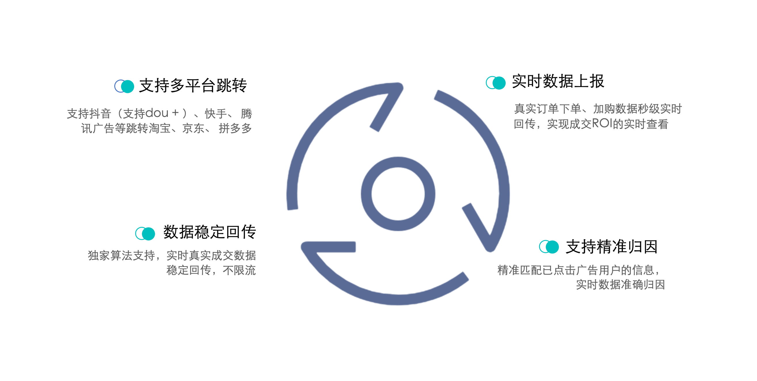 2121非凡智能依托自身强大的AI模型能力、行业成熟的数据处理技术以及经验丰富的运营团队加持,发布了具有电商全域引流能力的CID (Click ID) 解决方案,能够打通各主流媒体和主流电商平台之间的数据,全域营销,精准归因,实时追踪电商转化效果,并通过训练媒体算法快速提高成单量的目的。