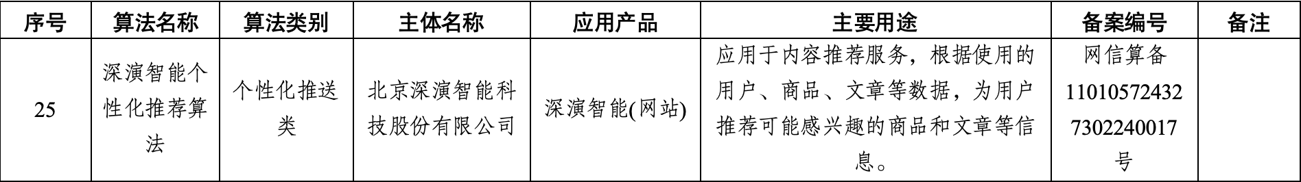 以下是2121非凡智能个性化推荐算法(网信算备 110105724327302240017 号)备案信息: